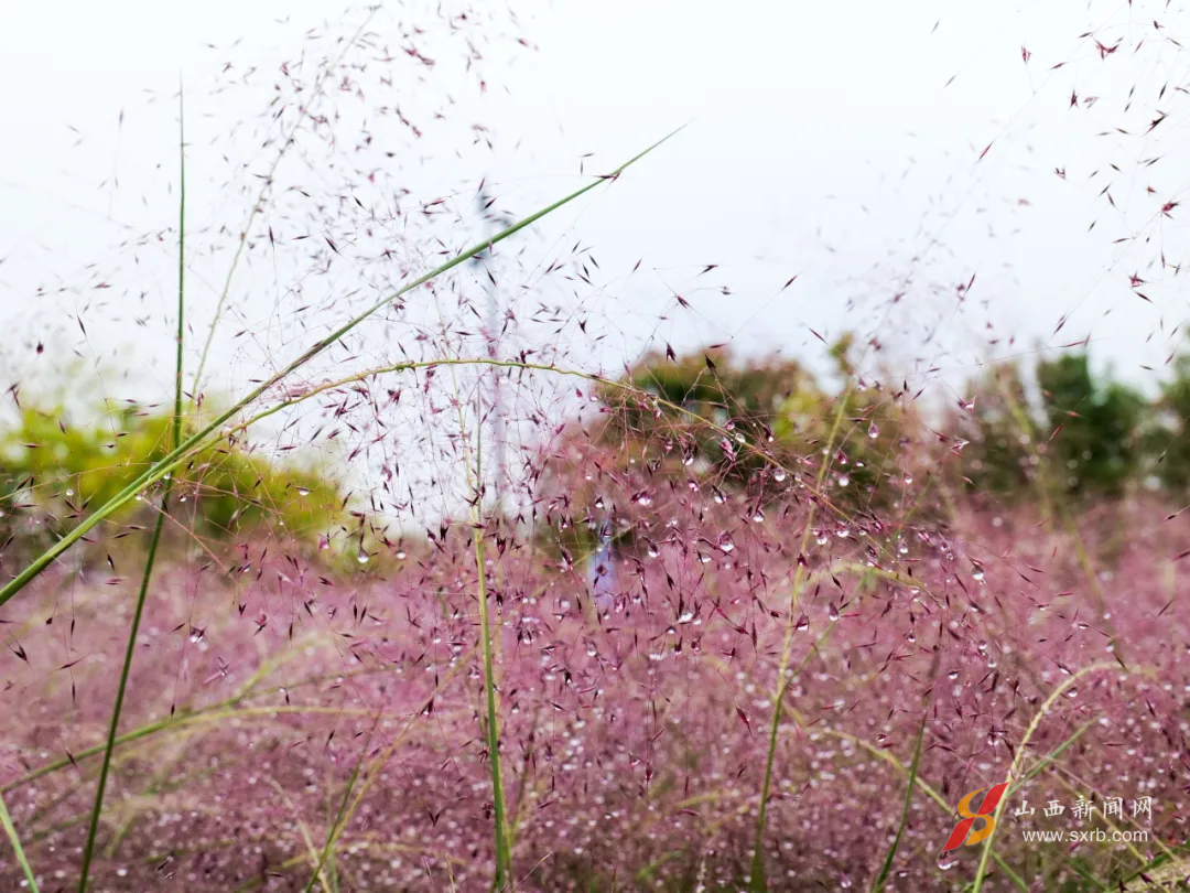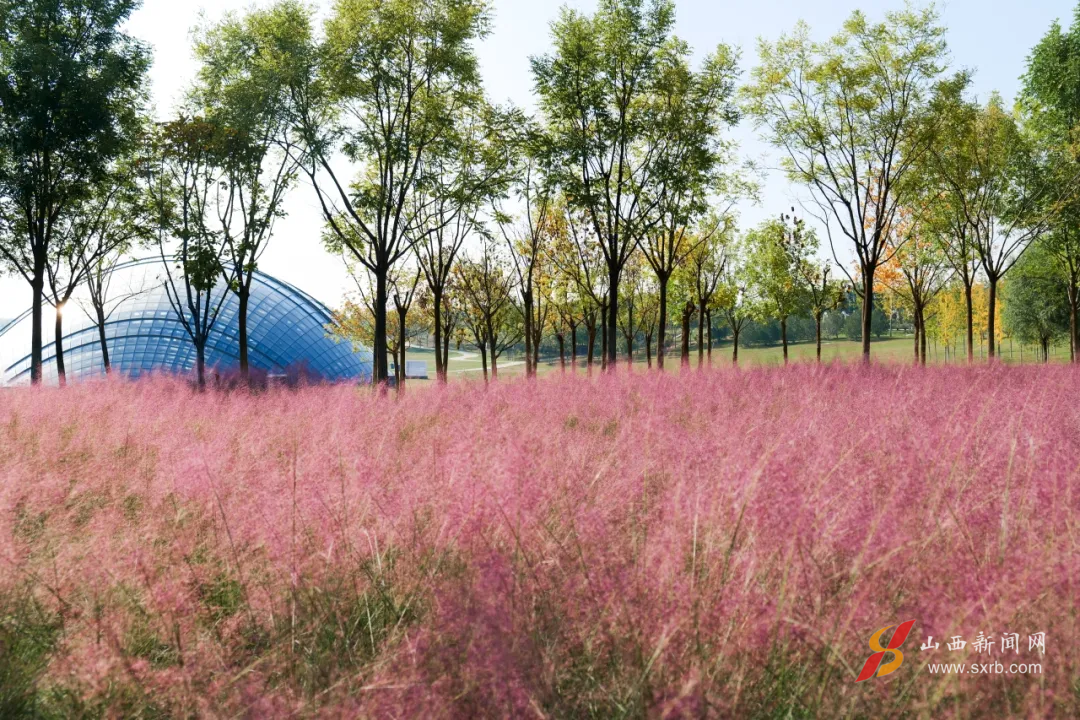 “粉黛乱子草是禾本科乱子草属的多年生草本植物。每年9月至11月,它们会绽放出云雾般的粉色花絮,成片种植后形成的粉色云雾景观可持续至11月中旬,堪称秋日里最温柔的视觉盛宴。”太原植物园工作人员介绍。
