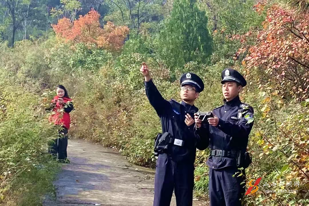 在雨后的泽州县南岭镇七盘村,红叶如霞,游人如织。面对客流高峰,泽州县公安局南岭派出所创新启动“地面人巡+空中机巡”的“地空联勤”模式。地面上,巡逻民警步履不停,沿红枫小径来回巡护,不时化身“暖心拍客”,为游客定格美好瞬间;空中,无人机持续盘旋,实时监测人流、车流与危险地段,实现隐患精准排查。