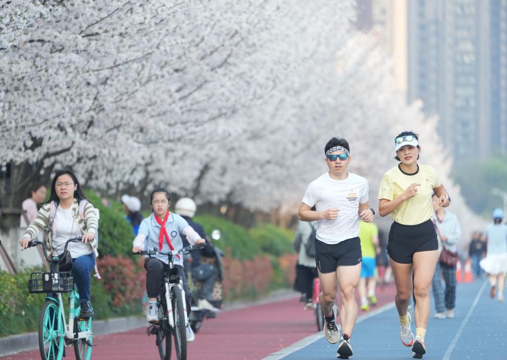 人们在跑步、骑行。新华社记者 翁忻旸 摄