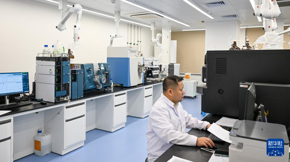 海口海关工作人员在海口海关技术中心实验室工作(10月22日摄)。