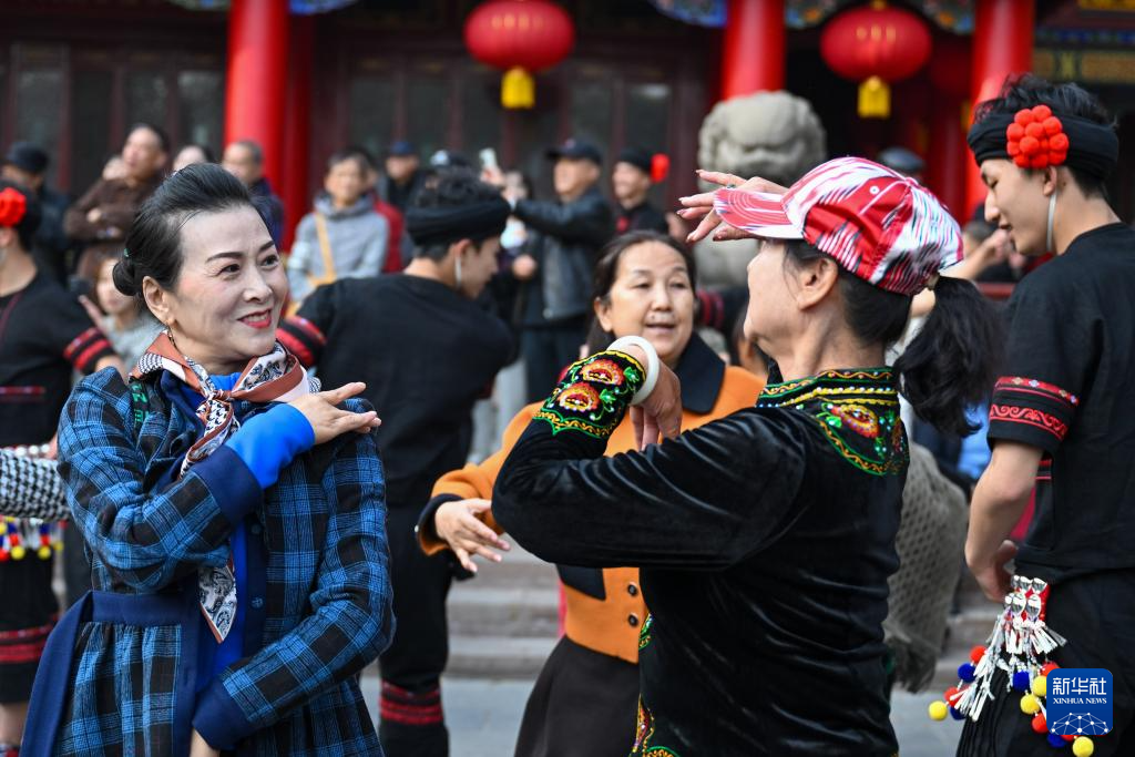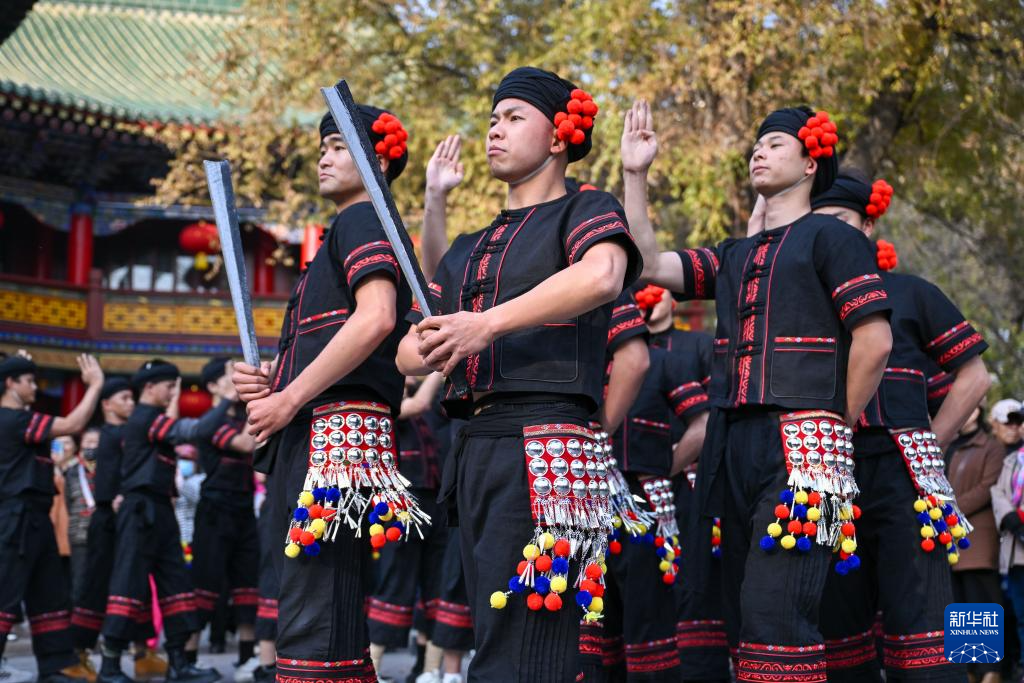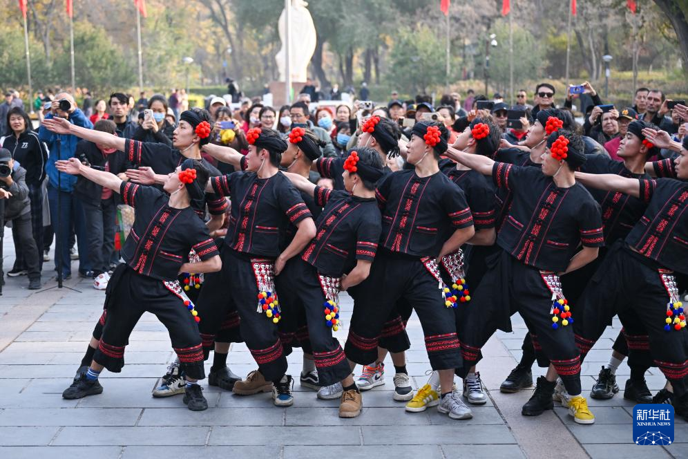 10月27日,在新疆乌鲁木齐市人民公园,云南省歌舞剧院的舞蹈演员现场演绎《望山》片段。