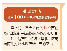 雅瑞地毯年产100万平方米方块地毯生产线是上党区重点培育的6个百亿级产业集群中智能制造领域核心项目。项目全面达产后,将填补华北地区高端商用方块地毯智能生产的空白,还将带动上下游原料供应、设备维修、物流运输等配套企业协同发展,创造近百个就业岗位。雅瑞地毯为全区构建“智能制造引领、产业链条完整、市场竞争力强”的产业生态注入强劲“智造”动能。