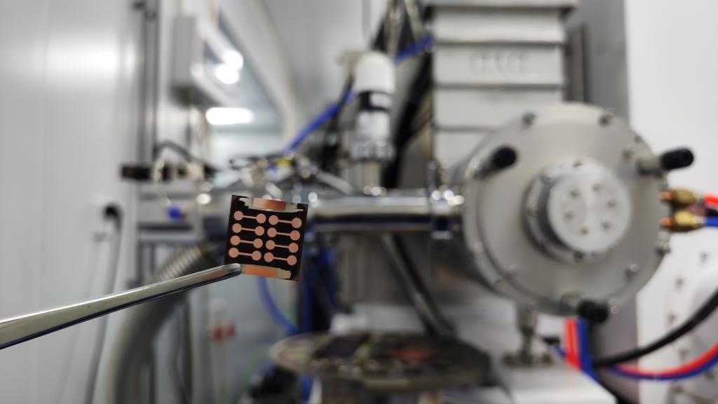 这是南京大学等单位研制的光电转化效率30.1%全钙钛矿叠层光伏电池。(受访者供图)