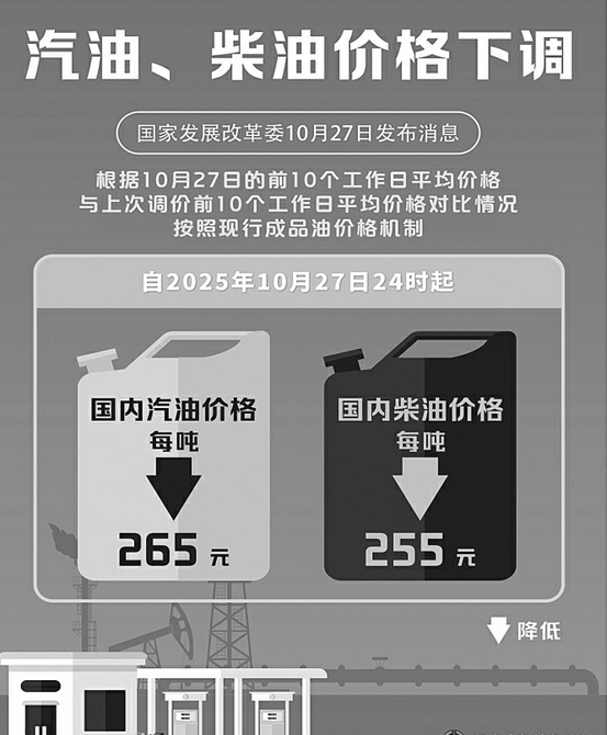 山西晚报·山河+讯(记者 张磊)10月27日24时,国内成品油零售调价开启下调窗口,汽、柴油零售限价每吨分别下调265元、255元,折合升价92#汽油、95#汽油、0#柴油分别降0.21元、0.22元、0.22元,此次调价为年内的第9次下调。