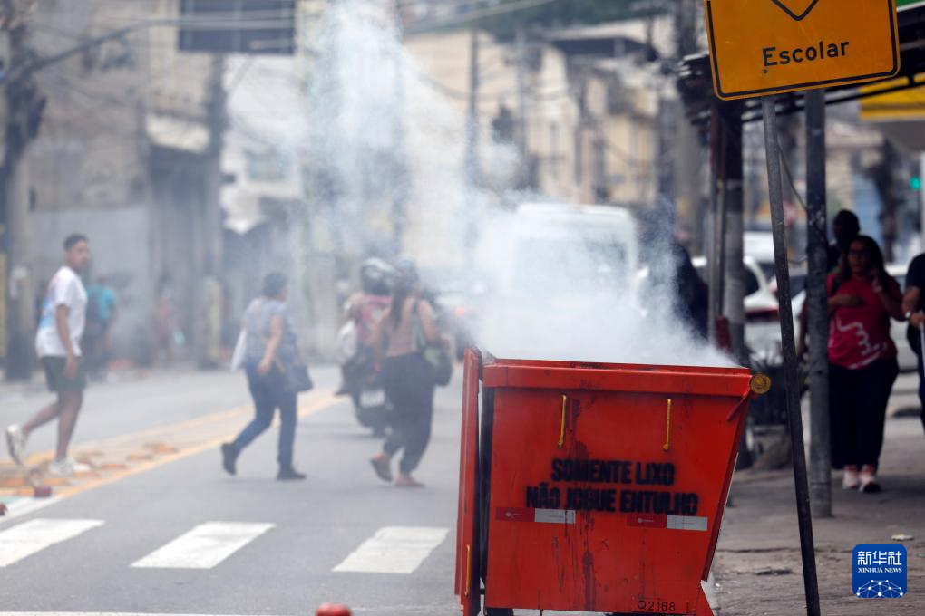 10月28日,巴西警方在里约热内卢展开针对黑帮“红色司令部”的大规模剿匪行动,军警在街头维持秩序。新华社/巴西通讯社