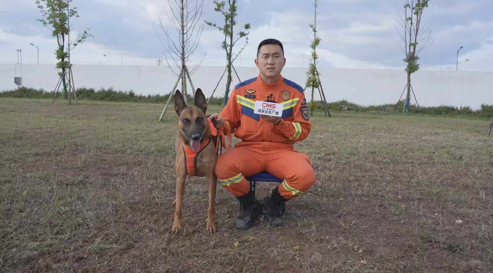为什么叫三丰?王坤笑着解释,因为它的性格很活泼,每天要给它做三次释放训练,相当于出来“疯”三次,所以取了一个谐音“三丰”。这只活力满满的搜救犬执行过多次搜救任务,战功赫赫。