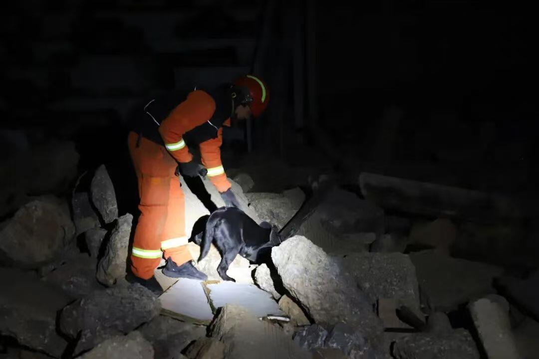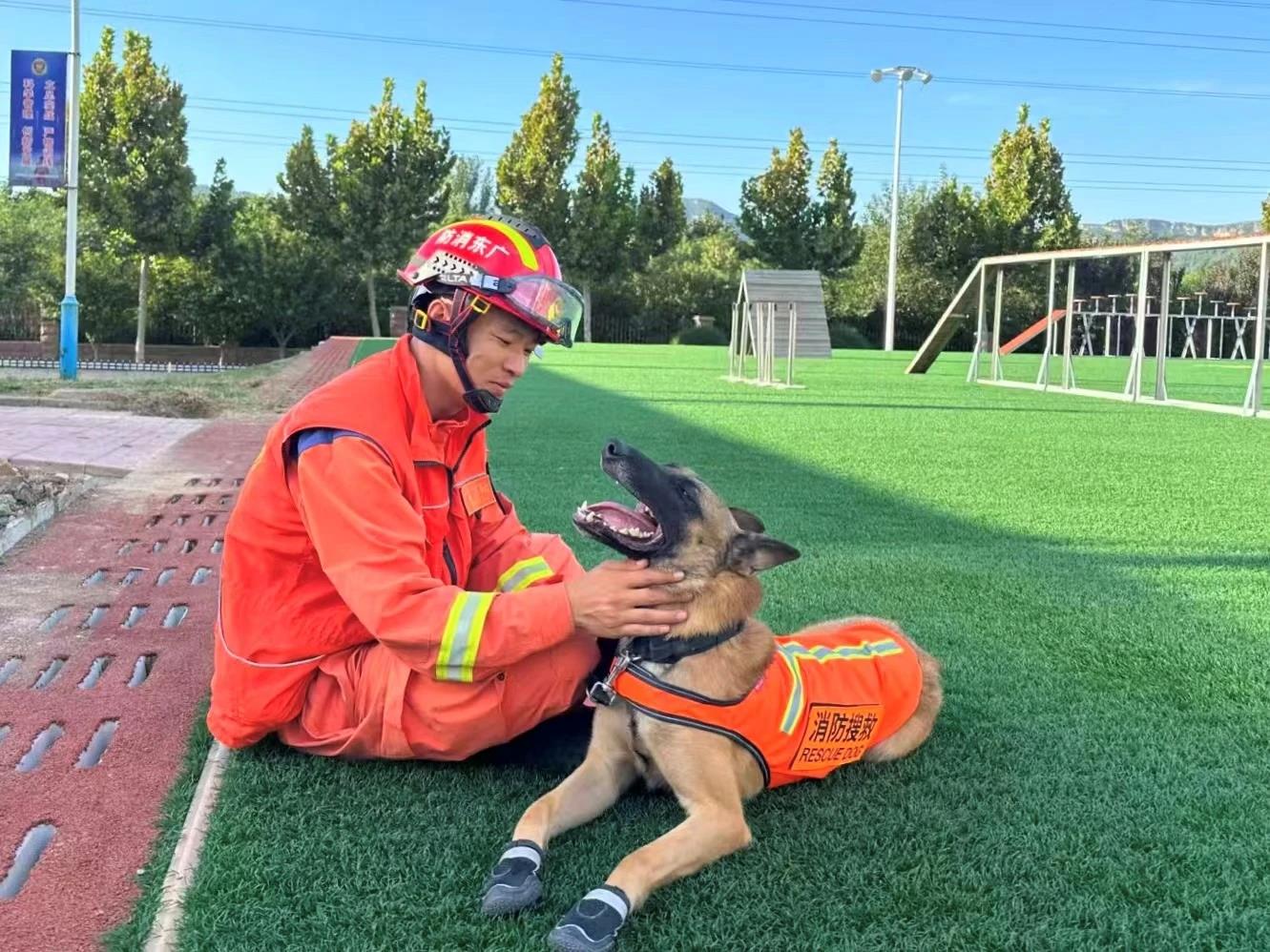 人犬默契训练:训导员与搜救犬需建立高度信任,一个手势、一声指令,就能协同作战。