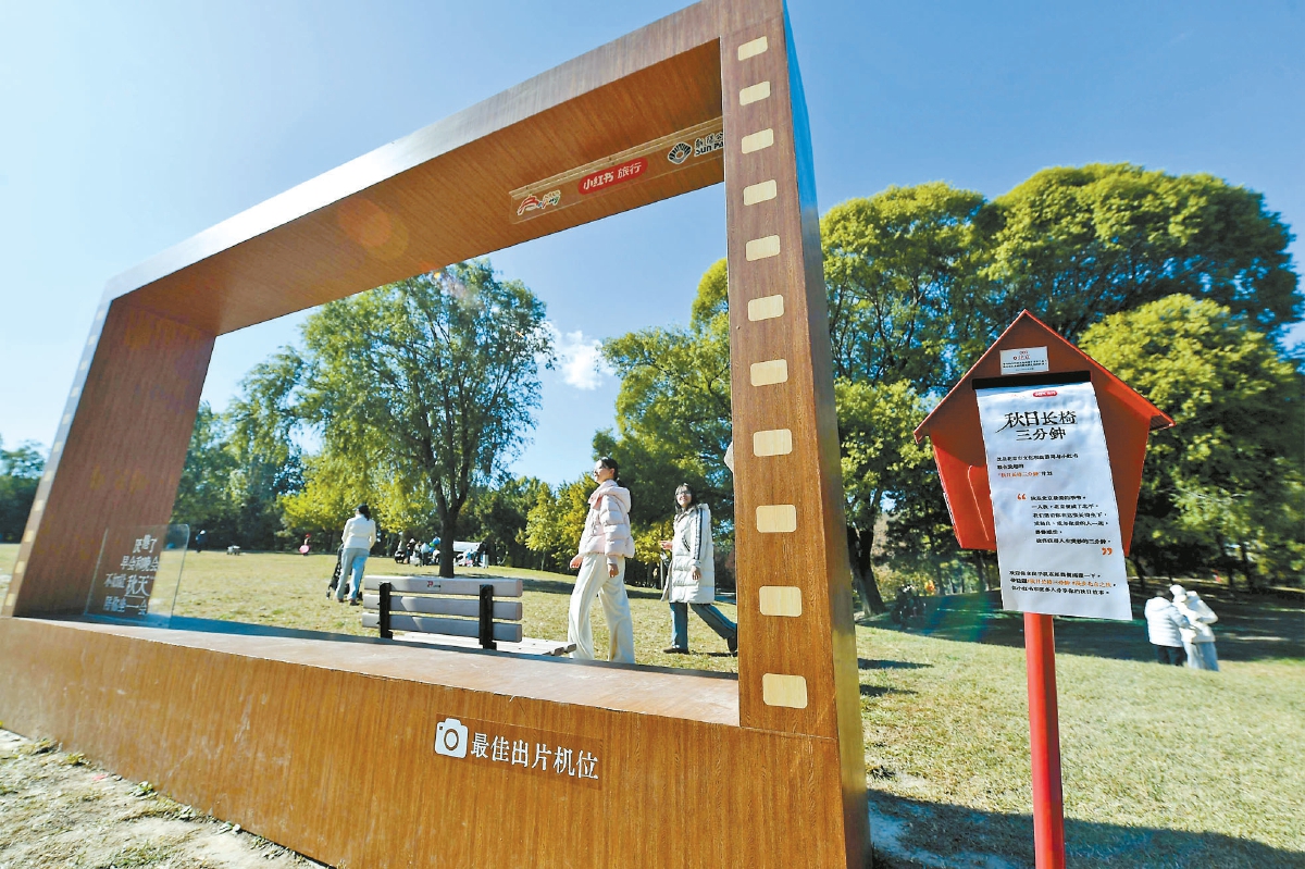 在快节奏的北京,一场以“慢”为特点的“秋日长椅”文旅活动正悄然走红。近期,北京市文化和旅游局联合北京市公园管理中心推出“秋日长椅三分钟”计划,通过在50个赏秋地布置200余把主题长椅、3个大型电影相框及60个秋日邮筒,搭配4条“秋日散步美学”路线,迅速抓住年轻人的注意力,成为金秋北京文旅市场的“破圈”亮点。当“内卷”“焦虑”成为年轻人工作生活中的高频词,“慢下来”的需求常常被忽略。“秋日长椅三分钟”计划恰好击中这一痛点,以“三分钟停留”为载体,为年轻人提供了一个释放情绪、感受生活的“小切口”,满足了年轻人对“精神留白”的需求。