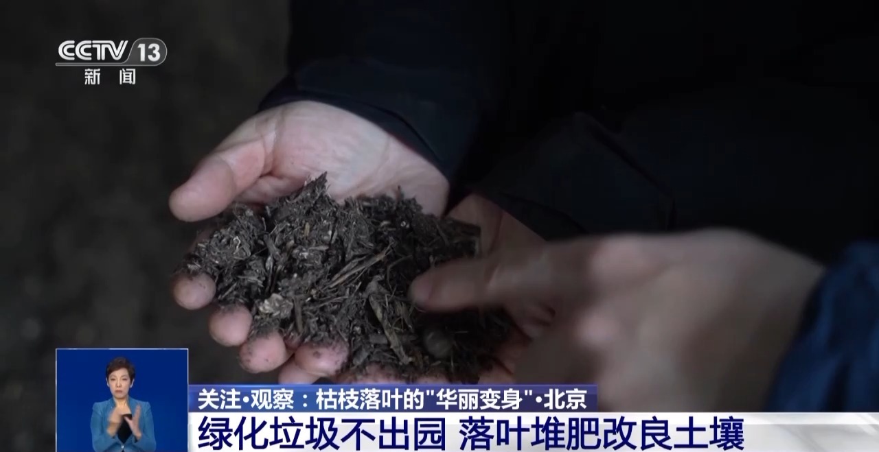 国家植物园(北园)副园长 魏钰:我们把这些绿化垃圾收集起来以后,首先进行粉碎,把它粉碎成不同的粒径,就相当于不同大小的颗粒,然后进行堆肥。