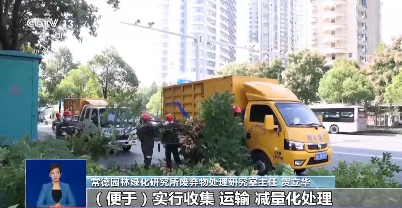 常德园林绿化研究所废弃物处理研究室主任 贺立华:使用粉碎车能够满足市城区植物废弃物处理,日产日清,不堆积、不遗留,便于实行收集、运输、减量化处理以及循环再利用。