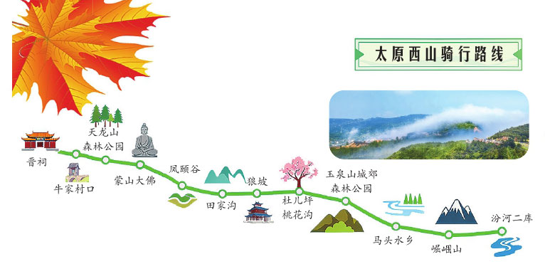 当秋风这支最神奇的画笔,将太行山的层林染成斑斓的调色盘,当崛 山的红叶如火焰般点燃山脊,当汾河的水波倒映出湛蓝高远的天空……山西,便进入了它一年中最富诗意的季节。此时,最好的旅行方式不再是隔着车窗观望,而是跨上一辆单车,让自己成为风景的一部分。山西这些最美骑行路线,沿途可以观赏多处人文景观和众多城郊森林公园的秋日美景,一“骑”去体验。