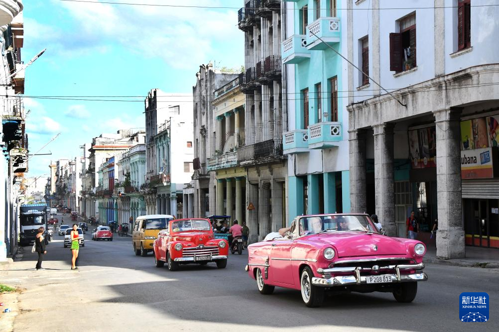 10月29日,颜色鲜艳的老爷车在古巴首都哈瓦那街头行驶。