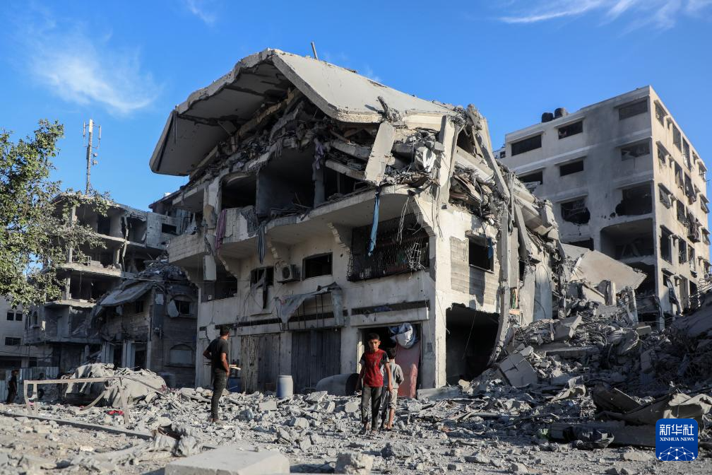 这是10月29日在加沙城一处遭以色列军队空袭后的废墟旁拍摄的巴勒斯坦儿童。新华社发(里泽克·阿卜杜勒贾瓦德摄)