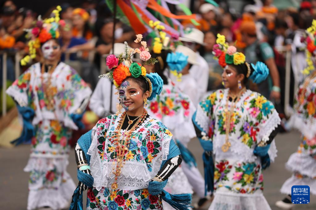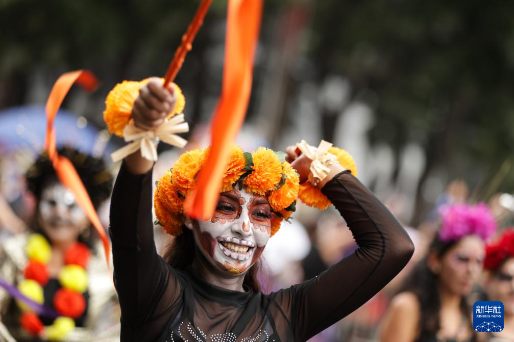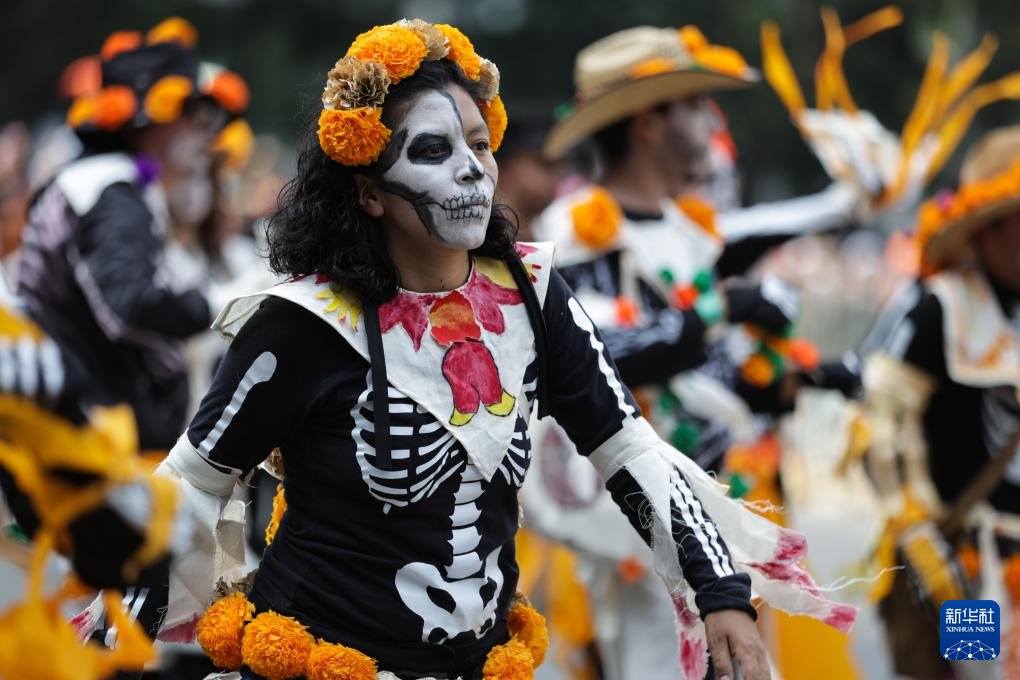 11月1日,在墨西哥首都墨西哥城,演员参加亡灵节游行。
