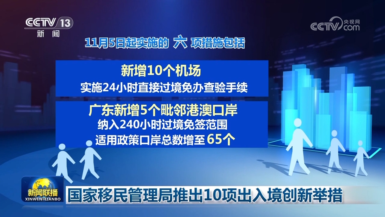 央视网消息(新闻联播):11月3日,国家移民管理局发布公告,决定实施支持扩大开放服务高质量发展10项创新举措。