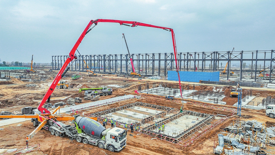 11月2日,大同1000千伏特高压变电站新建工程现场,国网山西送变电公司员工正在进行变电架构安装作业。该工程建成后将进一步提高京津唐电网稳定水平。
