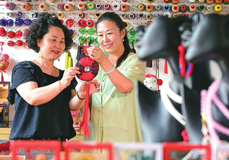 让手艺变现,让文化生根。杨雪飞开班培训妇女数十次,带动上千人掌握盘扣技艺;在阳高县、新荣区等地建立手工艺合作社,让40余名农村妇女通过制作盘扣实现家门口就业。