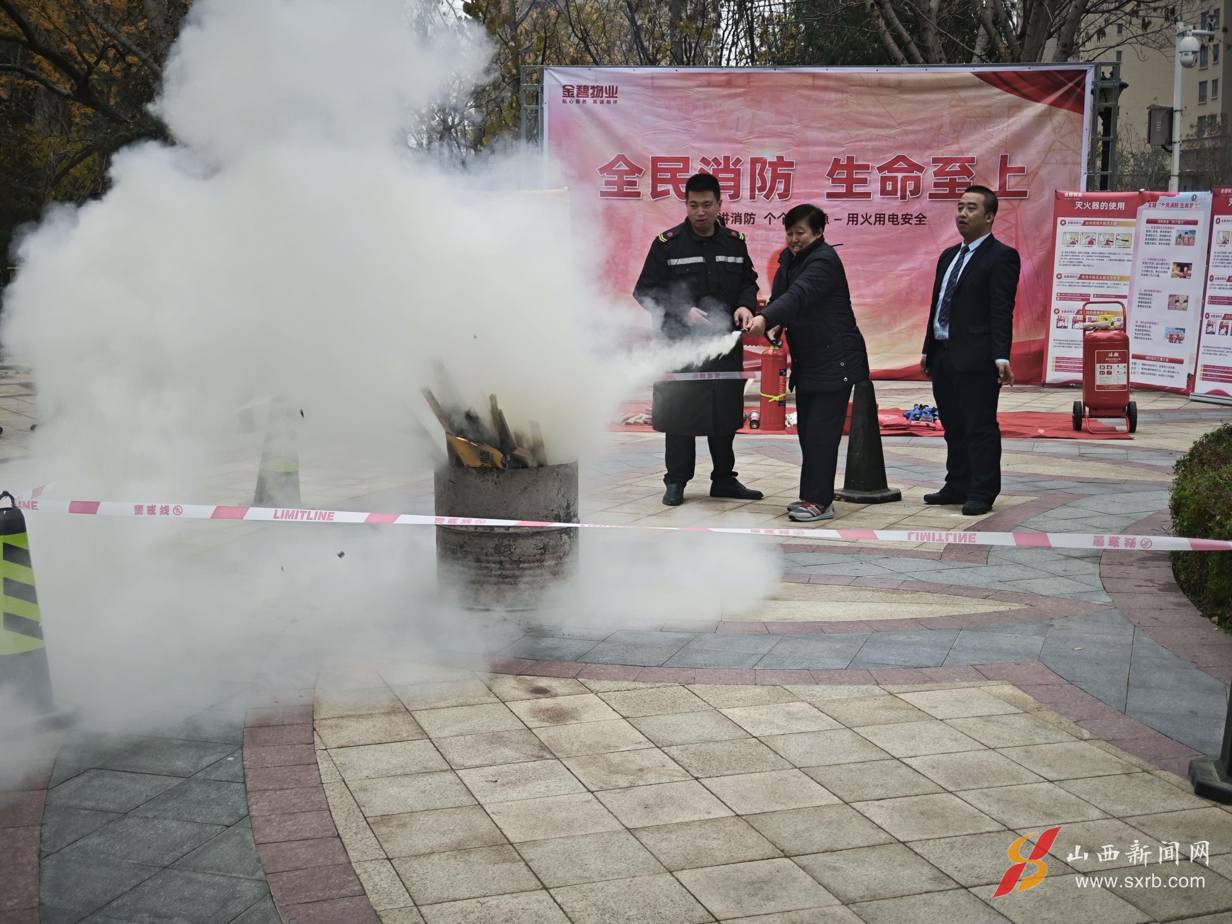 在全国消防日即将来临之际,为切实强化社区消防安全屏障,有效预防和减少火灾事故发生,保障居民生命财产安全,近日,太原市万柏林区黄坡社区在辖区小区广场举办了“全民消防·生命至上”主题消防知识宣传及灭火实操演练活动。
