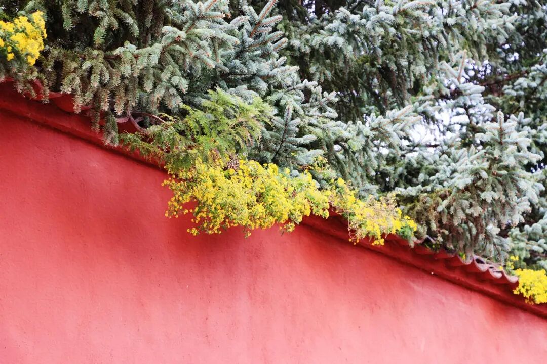 ▲显通寺红墙秋色