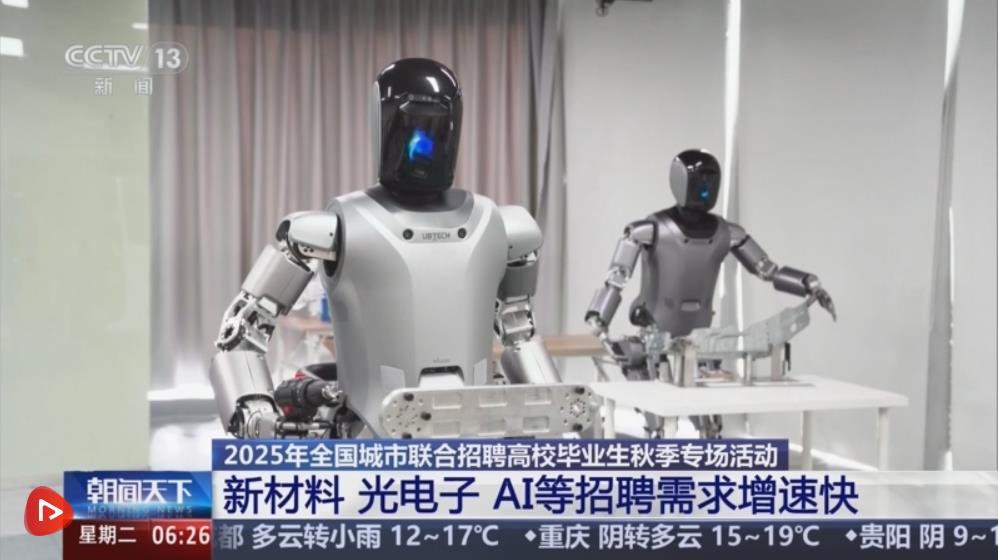 人工智能产业发展提速,高端技术领域人才缺口持续扩大。三季度,机器人调试工程师、算法工程师等核心岗位招聘需求增速均超50%,测试、运维、前端开发招聘增长一至两成。央视网