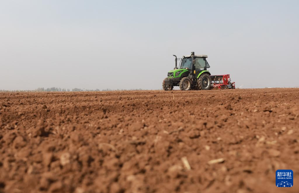 11月11日,农民驾驶农机在河南省焦作市温县黄河滩区播种小麦。