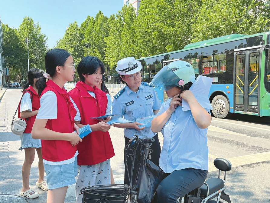 团市委组织开展“红领巾小交警”实践活动,青少年参与交通劝导,发放宣传扇子、学生尺等文创产品500套。