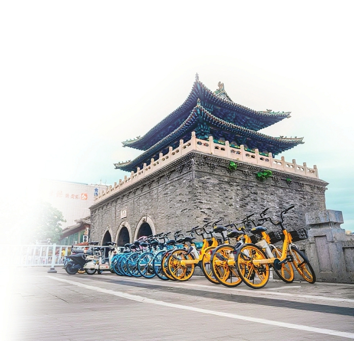 共享单车成为市民绿色出行的选择。