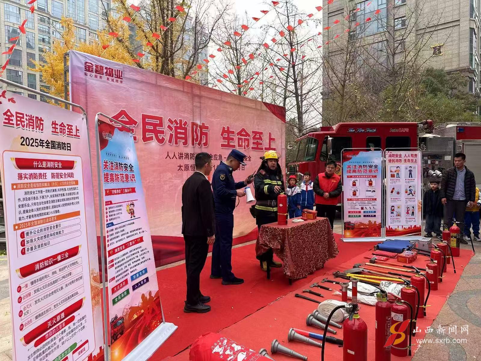 今年11月为全国消防宣传月,为深入贯彻“全民消防,生命至上”理念,切实提升群众的消防安全意识和应急处置能力,近日,太原各地策划开展了形式多样、内容务实的消防安全主题活动,构建起“演练强技能、宣传广覆盖、排查除隐患”的消防安全防护网,在全市范围内掀起了一场全民学消防、练消防、用消防的热潮。