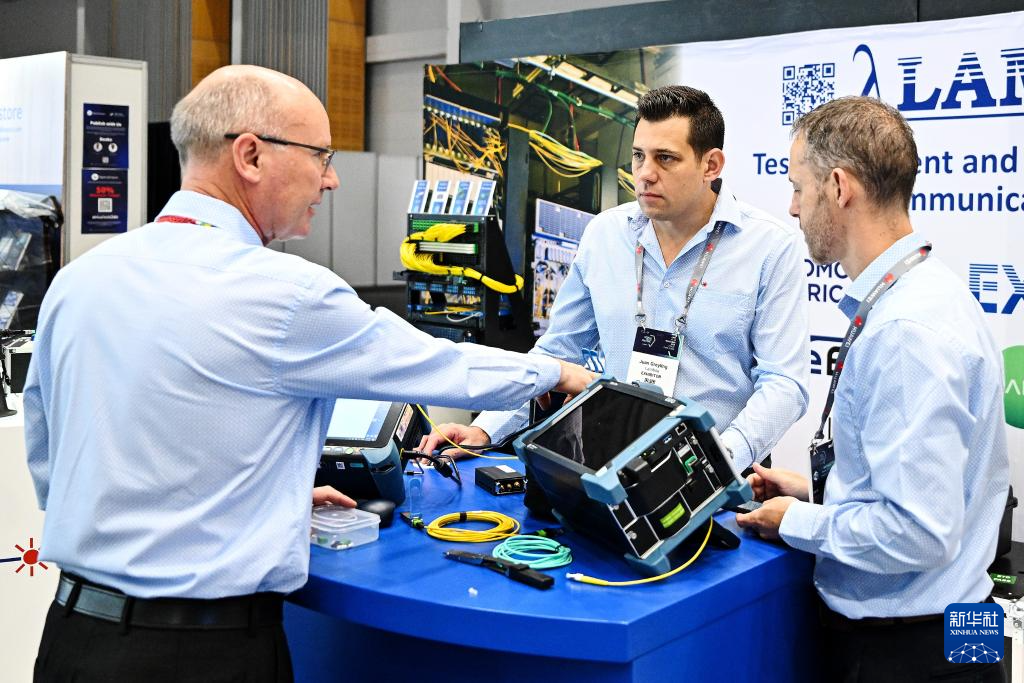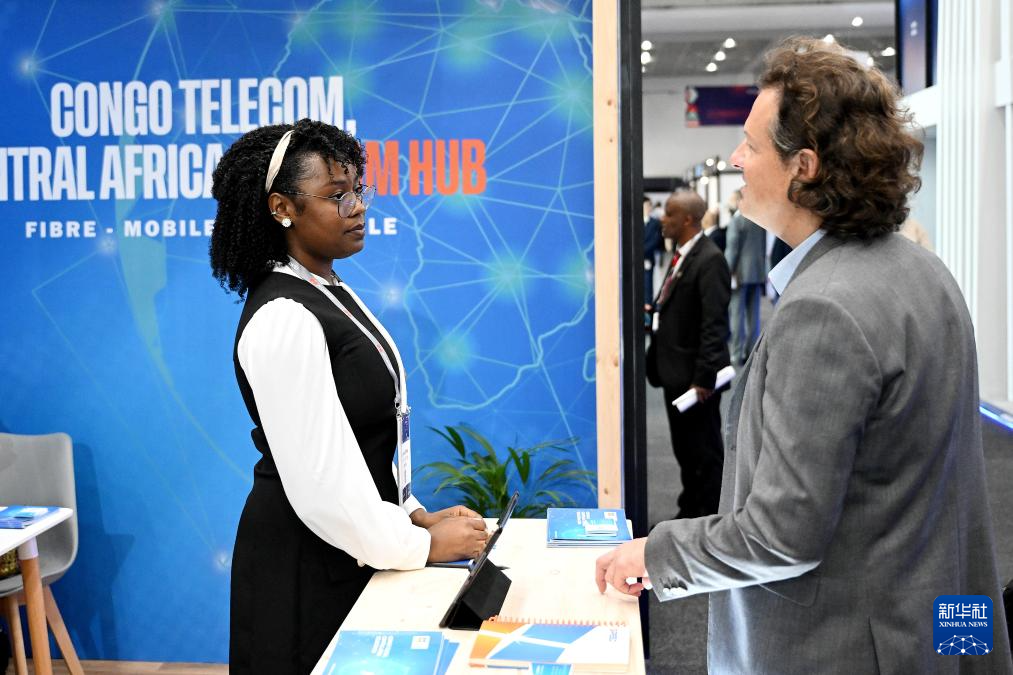 11月11日,在南非开普敦,人们在2025年非洲科技节的非洲通信展上交流。