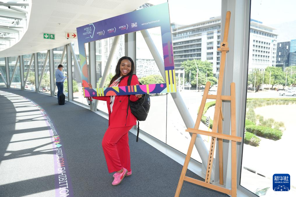 11月11日,在南非开普敦,一名与会代表在2025年非洲科技节上留影。