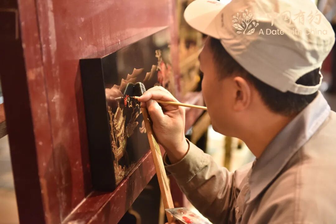 作为“山西三宝”之一,平遥推光漆与珐华器、澄泥砚齐名,是中国四大名漆器之一。这门始于魏晋南北朝、盛于明清的技艺,以独特的手掌推光和描金彩绘工艺闻名,在平遥古城的街巷里代代相传。在中国推光漆器博物馆,非遗代表性传承人的指尖翻飞,让这门古老技艺在当代焕发新生,更衍生出充满趣味的文化体验。