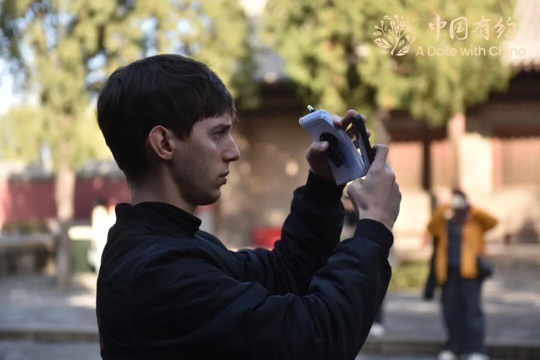 图为巴西记者Eric Napoli Fernandes用手机记录双林寺