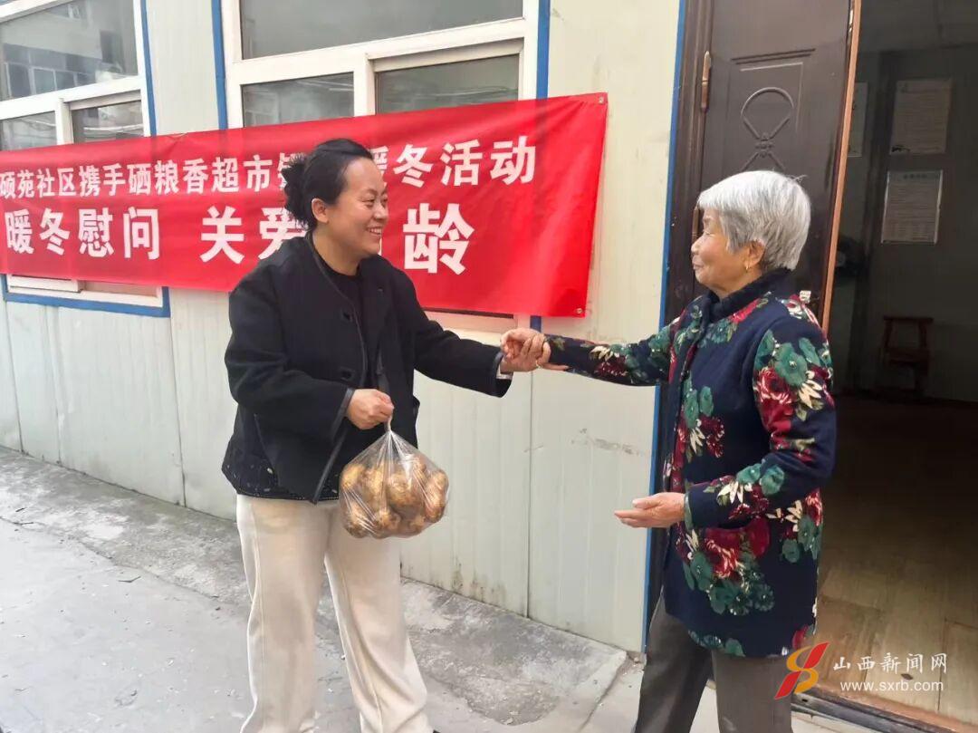 初冬微寒,情暖社区。近日,太原市尖草坪区华硕苑社区党群服务中心门前暖流涌动,一场“暖冬慰问”活动火热进行。一袋袋新鲜的土豆整齐码放,工作人员与志愿者忙碌有序,将总计1500斤的“暖心土豆”精准送达至社区55岁以上老人、高龄长者及残疾居民手中。
