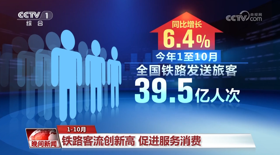 国铁集团11月17日发布的数据显示,今年1至10月,全国铁路发送旅客39.5亿人次,同比增长6.4%,客流总量和单日客流量均创历史新高。