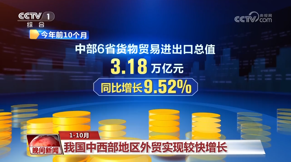 前10个月,我国西部12省区市货物贸易进出口3.5万亿元,创历史同期新高,同比增长8.9%。西部地区对共建“一带一路”国家进出口2.2万亿元,占同期西部地区外贸总值超六成。民营企业继续担当外贸主力军,外商投资企业、国有企业进出口增速均超10%。