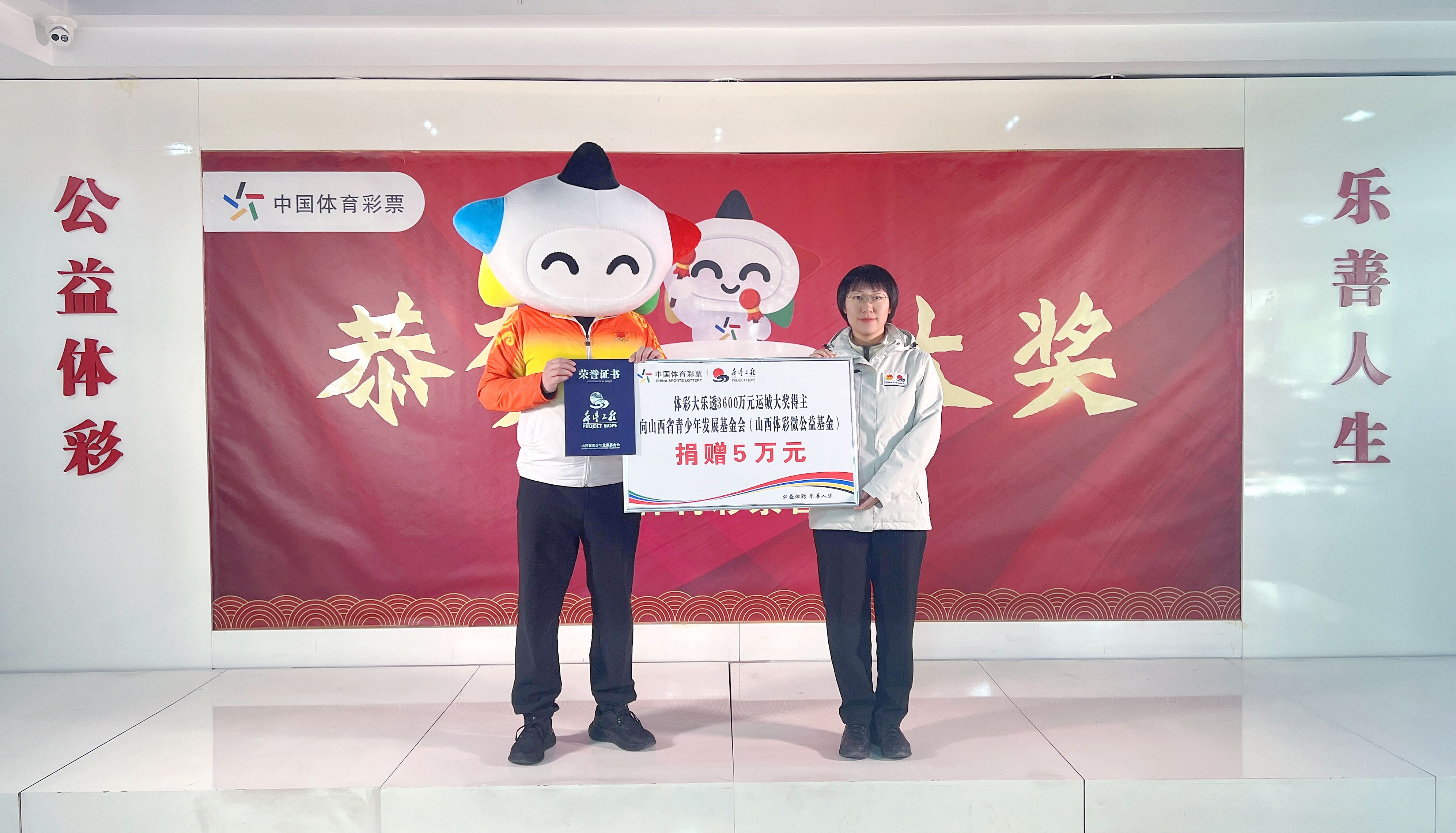 领奖后,幸运购彩者从奖金中拿出5万元捐赠给山西省青少年发展基金会,并表示未来会继续支持体彩,传递“公益体彩 乐善人生”的购彩初心。