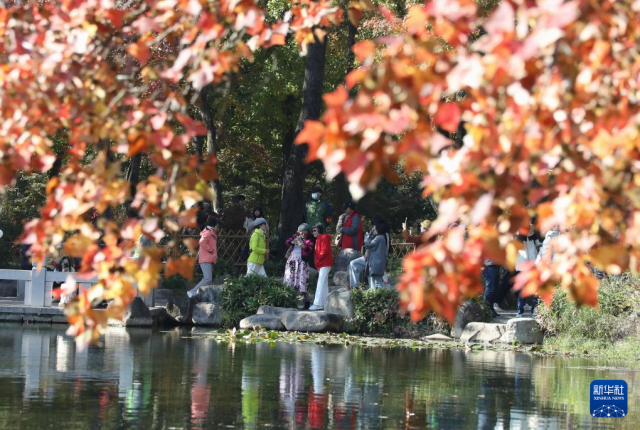 11月19日,游客在江苏苏州天平山景区赏枫游玩。新华社发(杭兴微 摄)