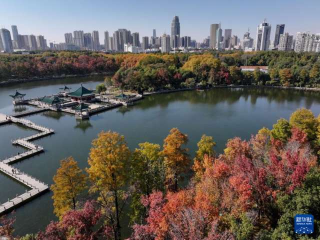 11月18日在湖北省武汉市东湖风景区拍摄的初冬景色(无人机照片)。新华社发(赵军摄)