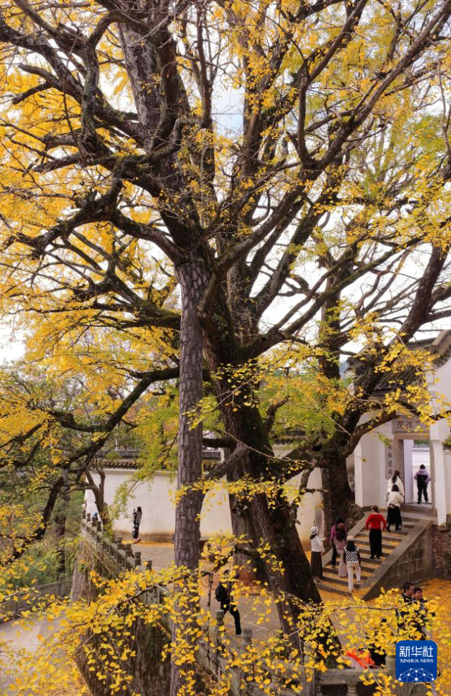 11月19日,游客在湖南省衡阳市南岳衡山风景区赏景游玩(无人机照片)。新华社发(曹正平摄)