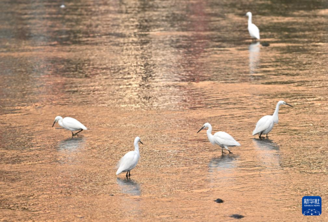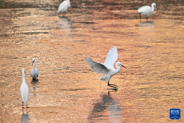 11月19日,白鹭在湖北省宣恩县城贡水河觅食。新华社发(宋文摄)