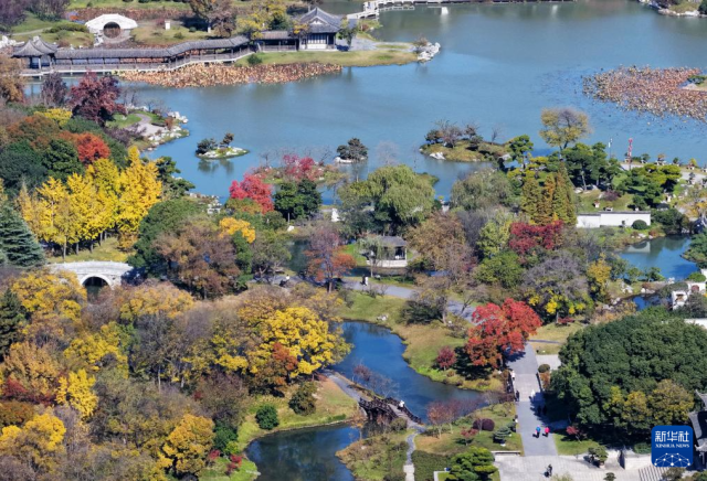 11月19日拍摄的江苏扬州瘦西湖风景区(无人机照片)。