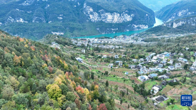 重庆市酉阳土家族苗族自治县龚滩镇层林尽染(11月18日摄,无人机照片)。新华社发(邱洪斌摄)