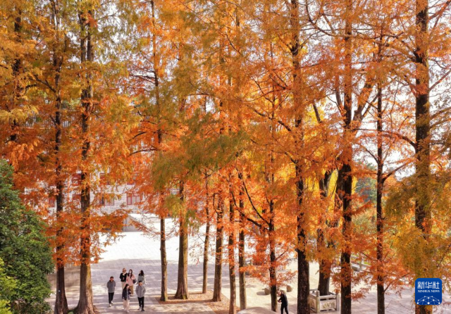 11月19日,游客在江苏省苏州市拙政园游玩(无人机照片)。新华社发(王须中 摄)
