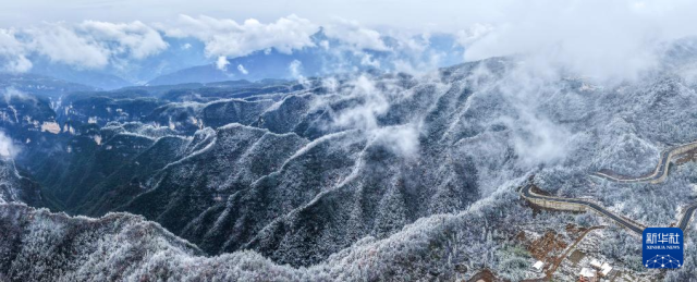 11月18日在贵州梵净山景区拍摄的冬景(无人机照片)。新华社发(李鹤摄)