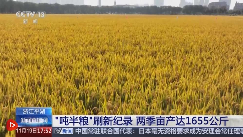 央视网消息:11月18日,浙江嘉兴市平湖市“吨半粮”示范田测产结果出炉,实测攻关田麦稻两季实割亩产达到1655.06公斤,刷新浙江省保持了14年的历史纪录。“吨半粮”是指麦稻轮作的耕作制度下,同一区域内小麦和水稻一个周期的亩产总量达到1500公斤,即1吨半以上,是粮食高产、超高产的重要标志。