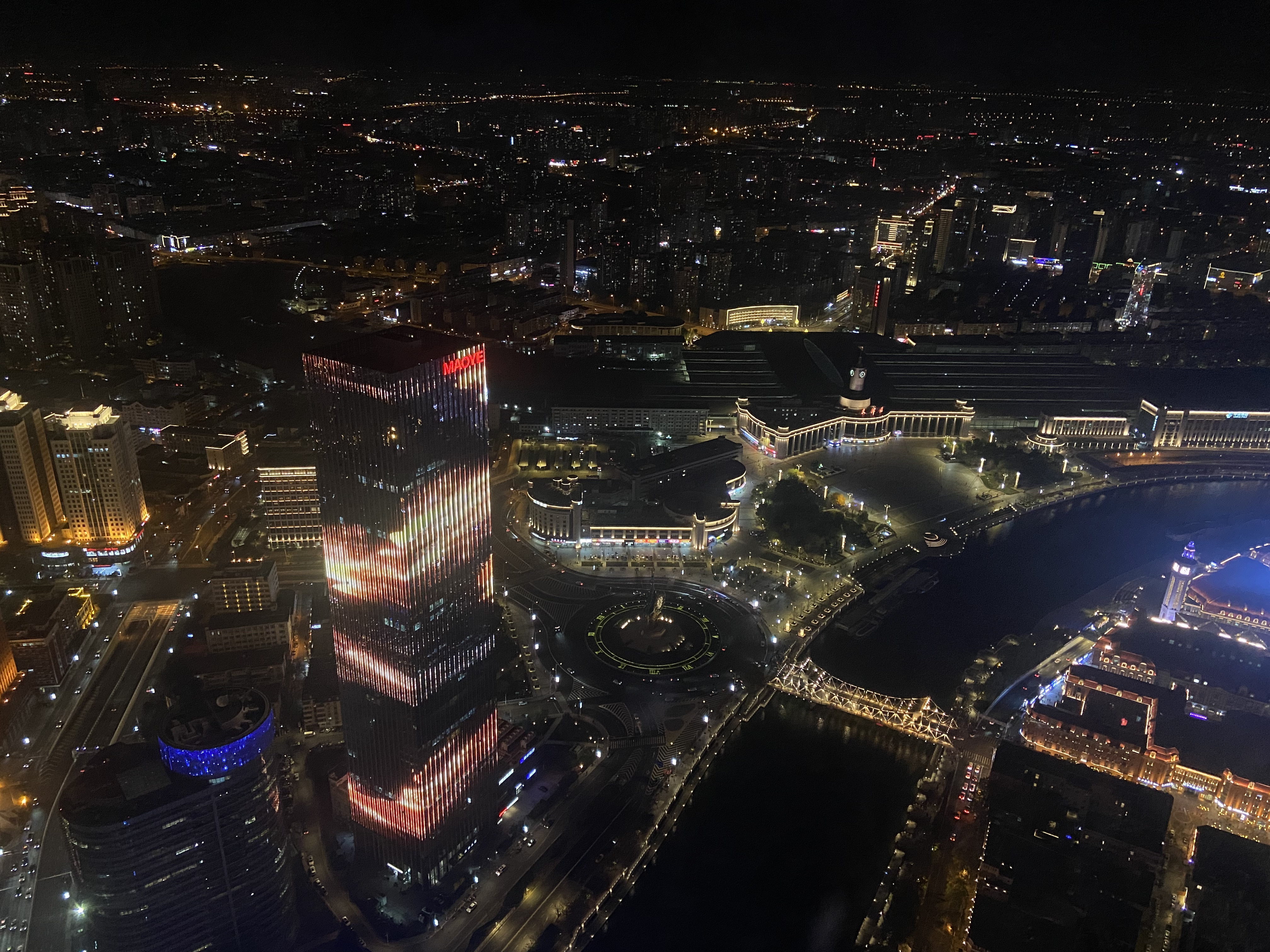 ▲站在“天津之心”中俯瞰天津夜景