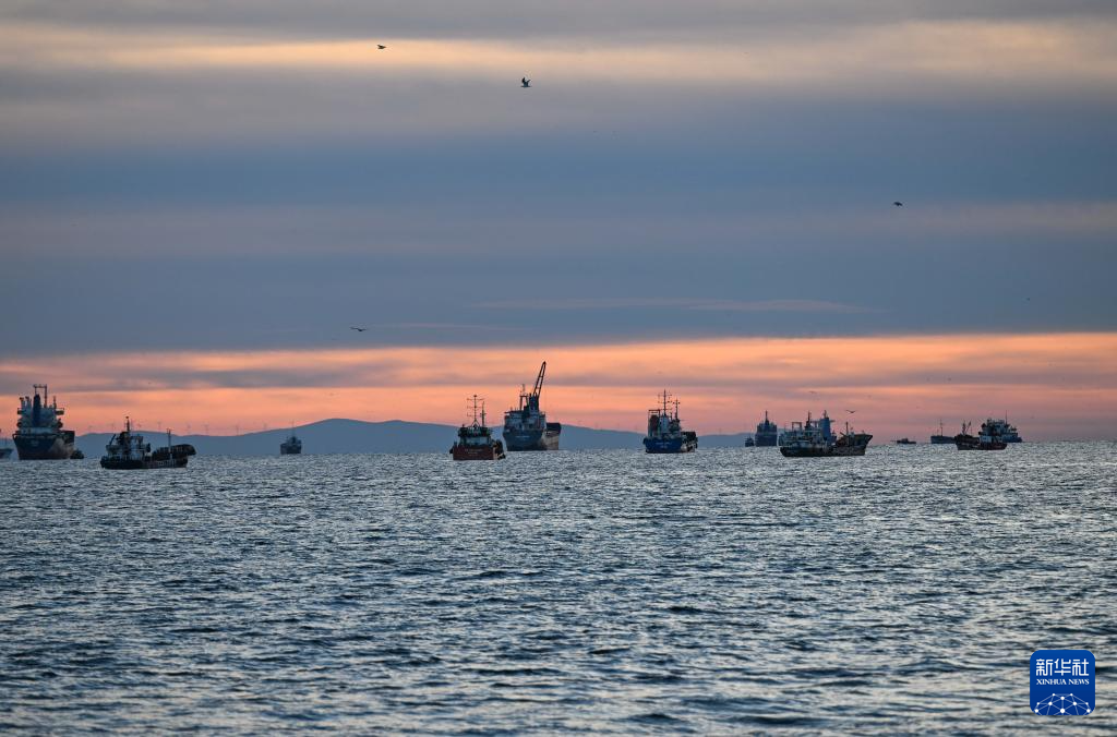 这是11月25日拍摄的停泊在土耳其伊斯坦布尔马尔马拉海上的船只。