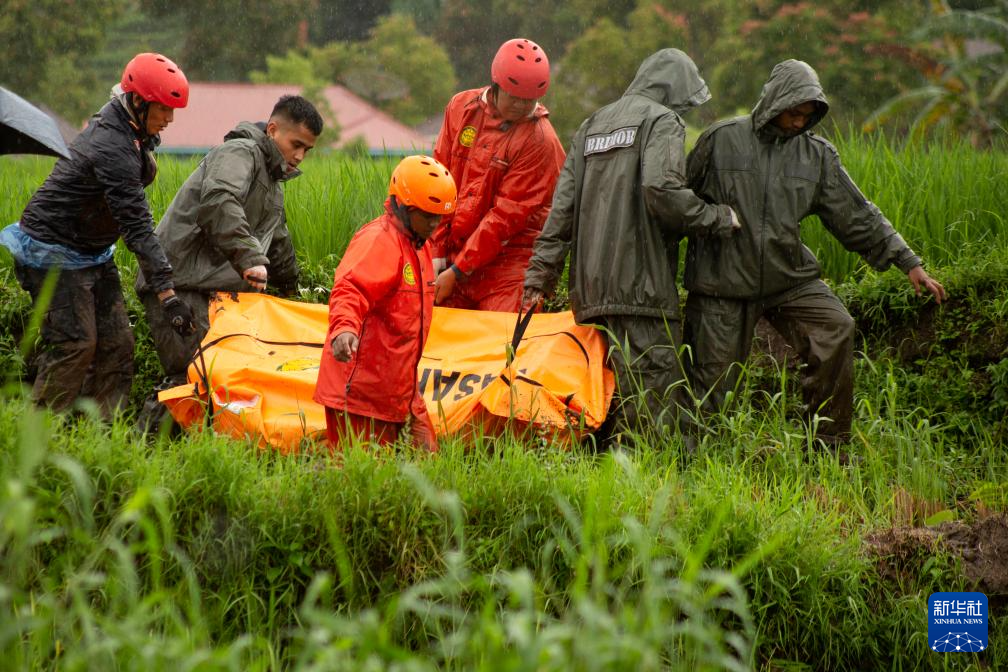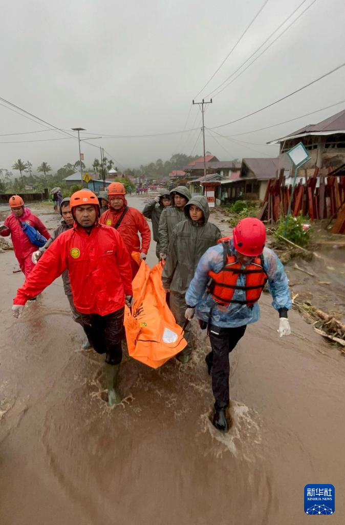 11月28日,在印度尼西亚西苏门答腊省,救援人员转运遇难者遗体。新华社发(安德里·马迪安赛亚摄)