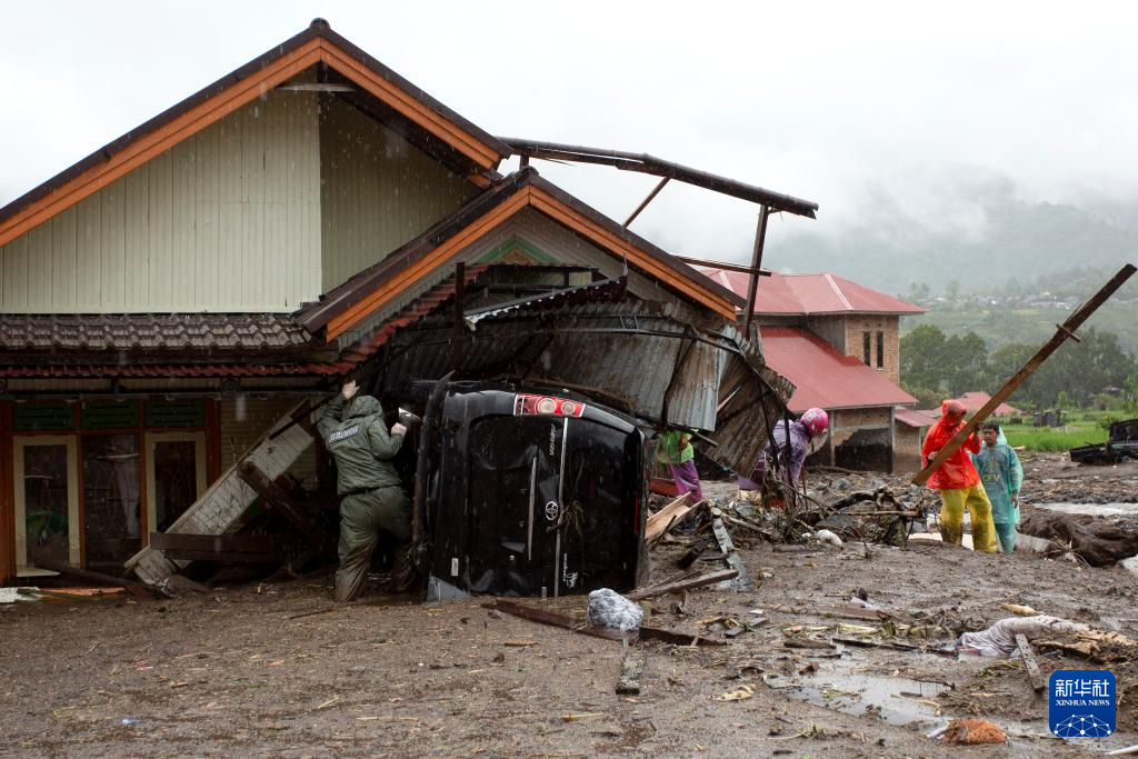 11月28日,在印度尼西亚西苏门答腊省,救援人员在受灾地点工作。新华社发(安德里·马迪安赛亚摄)