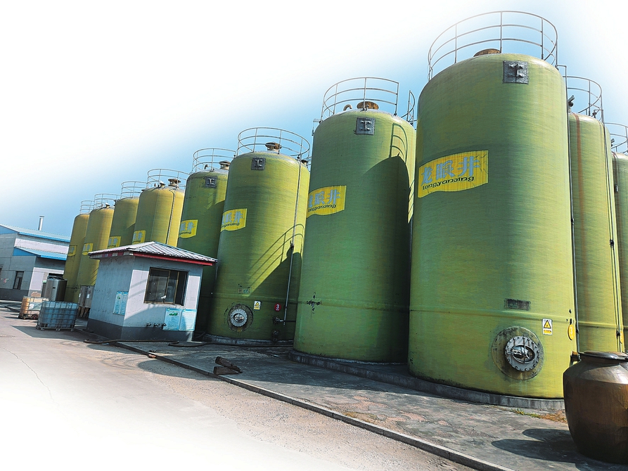 公司厂区排列整齐的醋罐。